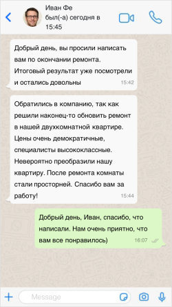 Клиент сможет оплатить ремонт наличным или безналичным расчётом. Вносить деньги следует поэтапно. Количество этапов указано в документе. Выполнить ремонт зала, кухни, спальни, ванной комнаты и туалета по приемлемой цене просто, достаточно обратиться в нашу компанию.